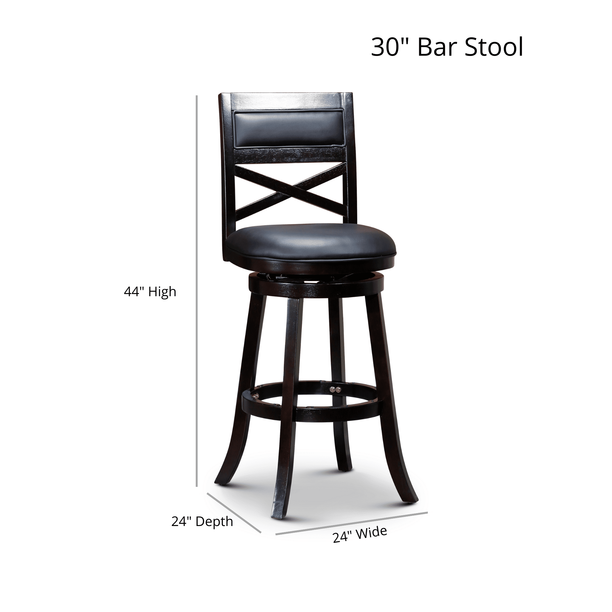 TWO SIZES: Their classic design is sure to complement any decor, available in 24 in counter stool or 30 in bar stool heights. Seat dimensions: 17 1/2 in W x 16 3/4 in D, Footrest height: 24 in stool 8 in, 30 in stool 10 1/2 in. SIMPLE ASSEMBLY REQUIRED: Easy-to-follow instructions and hardware included.