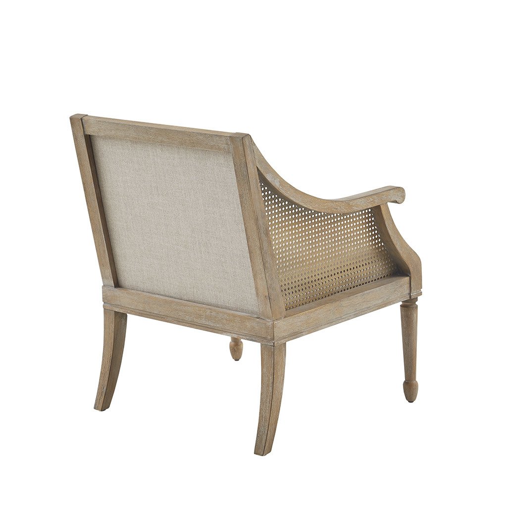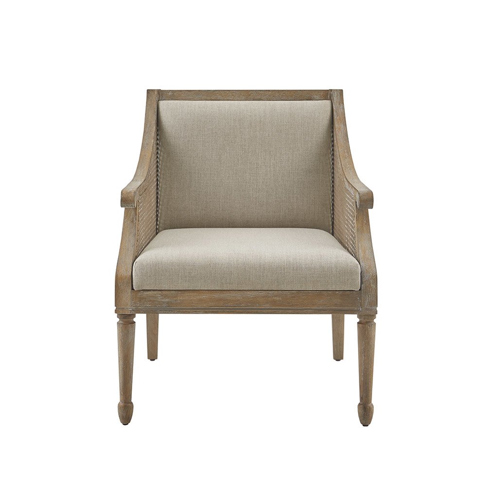 Frame: Solid woodLeg: Solid woodArm: Solid wood and caneUpholstery Fabric: 100% polyesterCushion: FoamWood Finish: Reclaimed natural