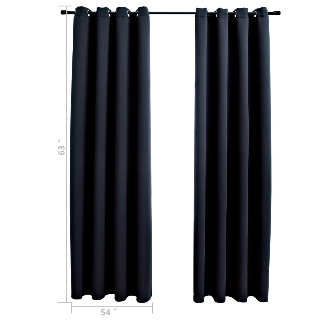 Blackout Curtains with Rings 2 pcs Black 54"x63" Fabric