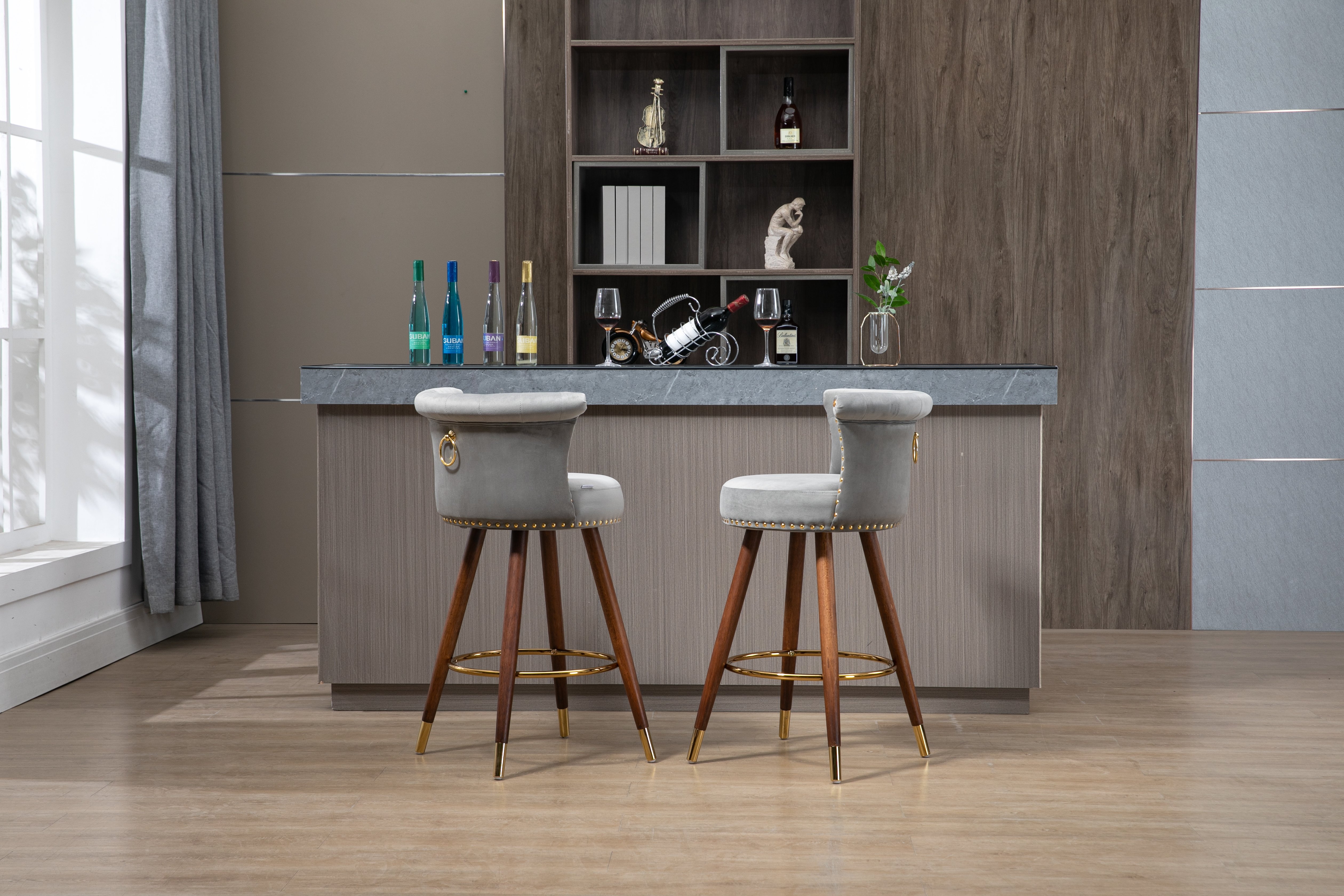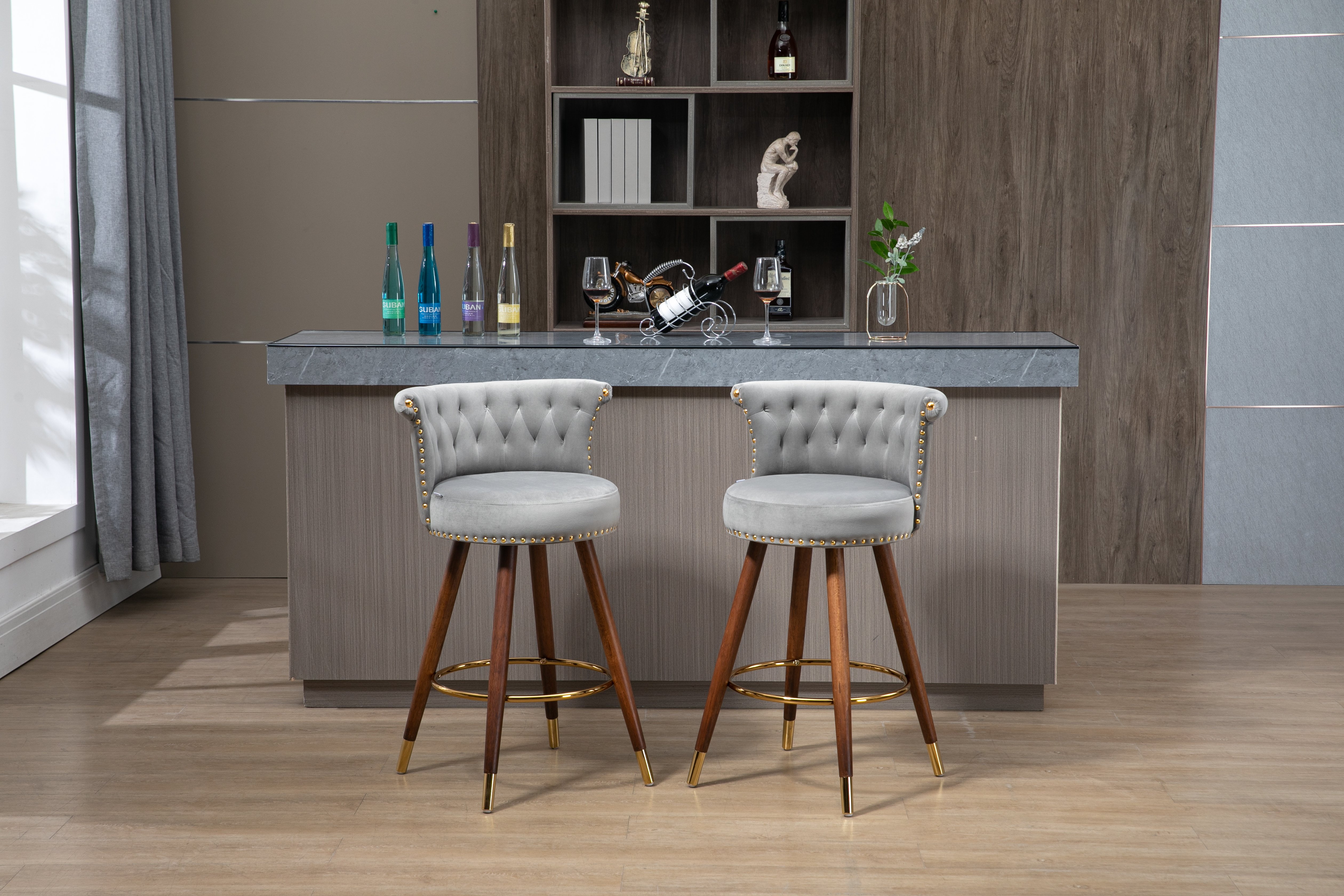 Counter Height Bar Stools Set of 2 for Kitchen Counter Solid Wood Legs with a fixed height of 360 degrees