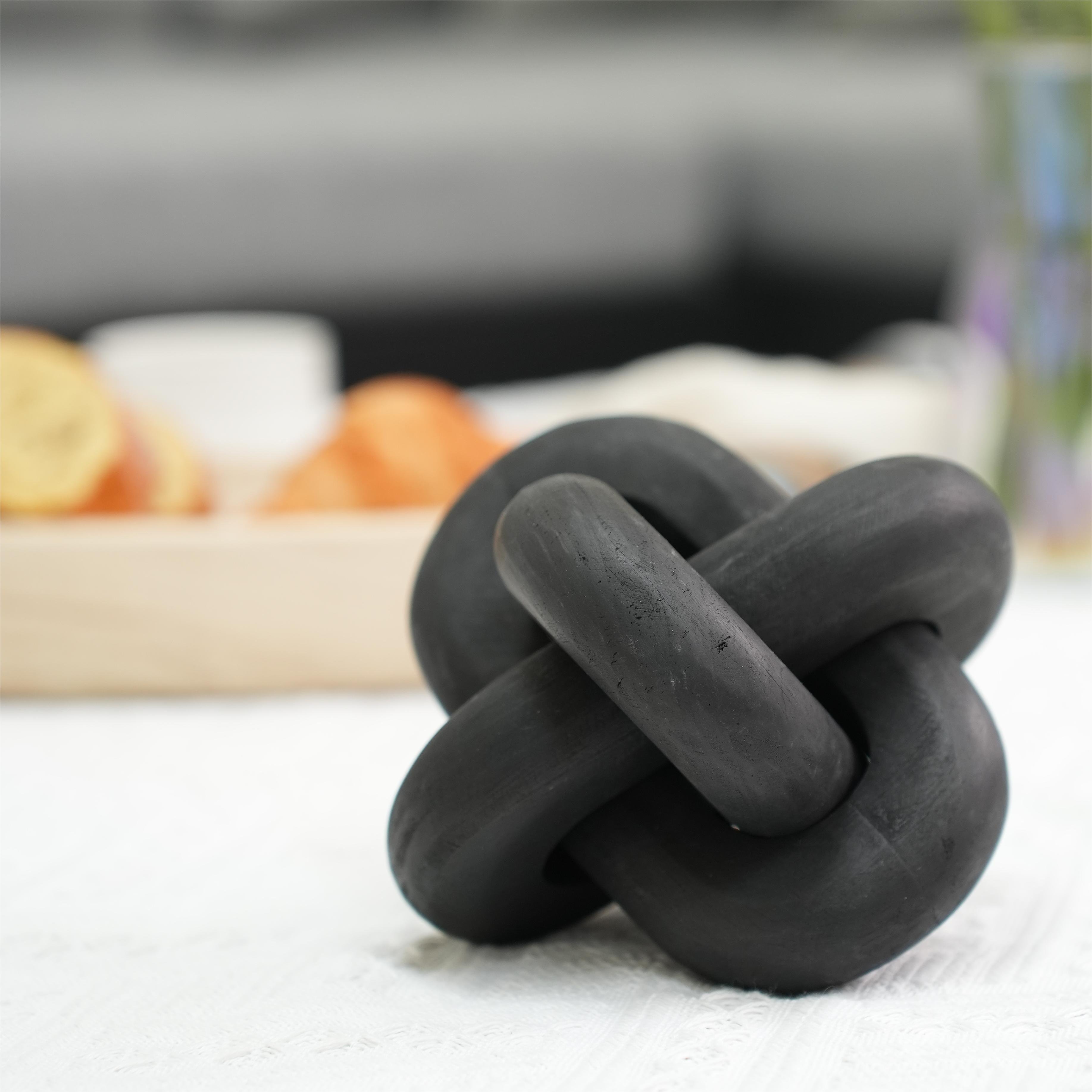 Elevate your home's aesthetic with this exquisite hand-carved black wood chain decor. Ideal for bookshelves, desks, living rooms, coffee tables, or farmhouse settings, this 3-link decorative chain infuses boho charm and sophistication into any space. Each piece is uniquely carved, offering a one-of-a-kind ornament that enhances various decor styles.