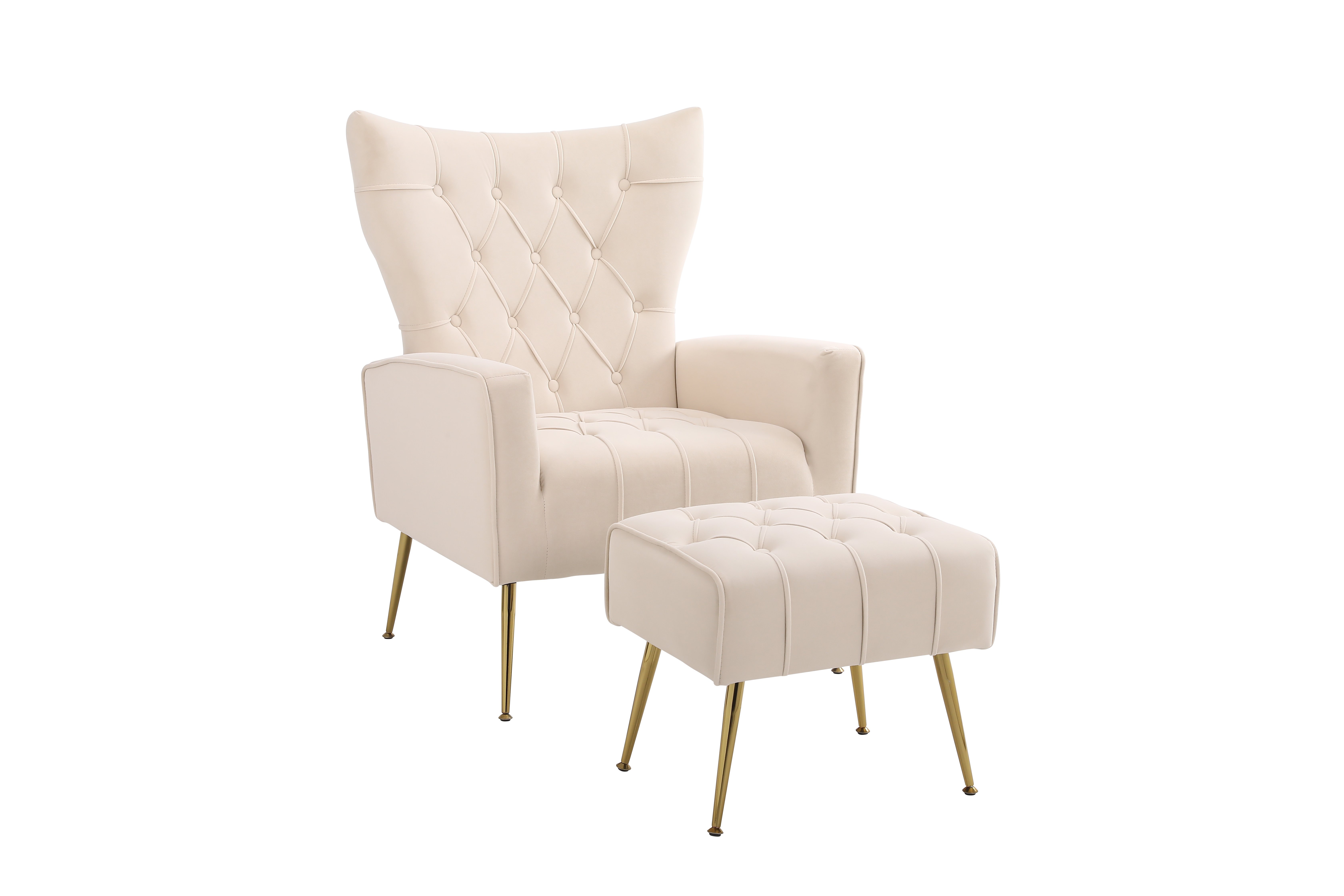 Modern Accent Chair with Ottoman, Comfy Armchair for Living Room, Bedroom, Apartment, Office (Beige)
