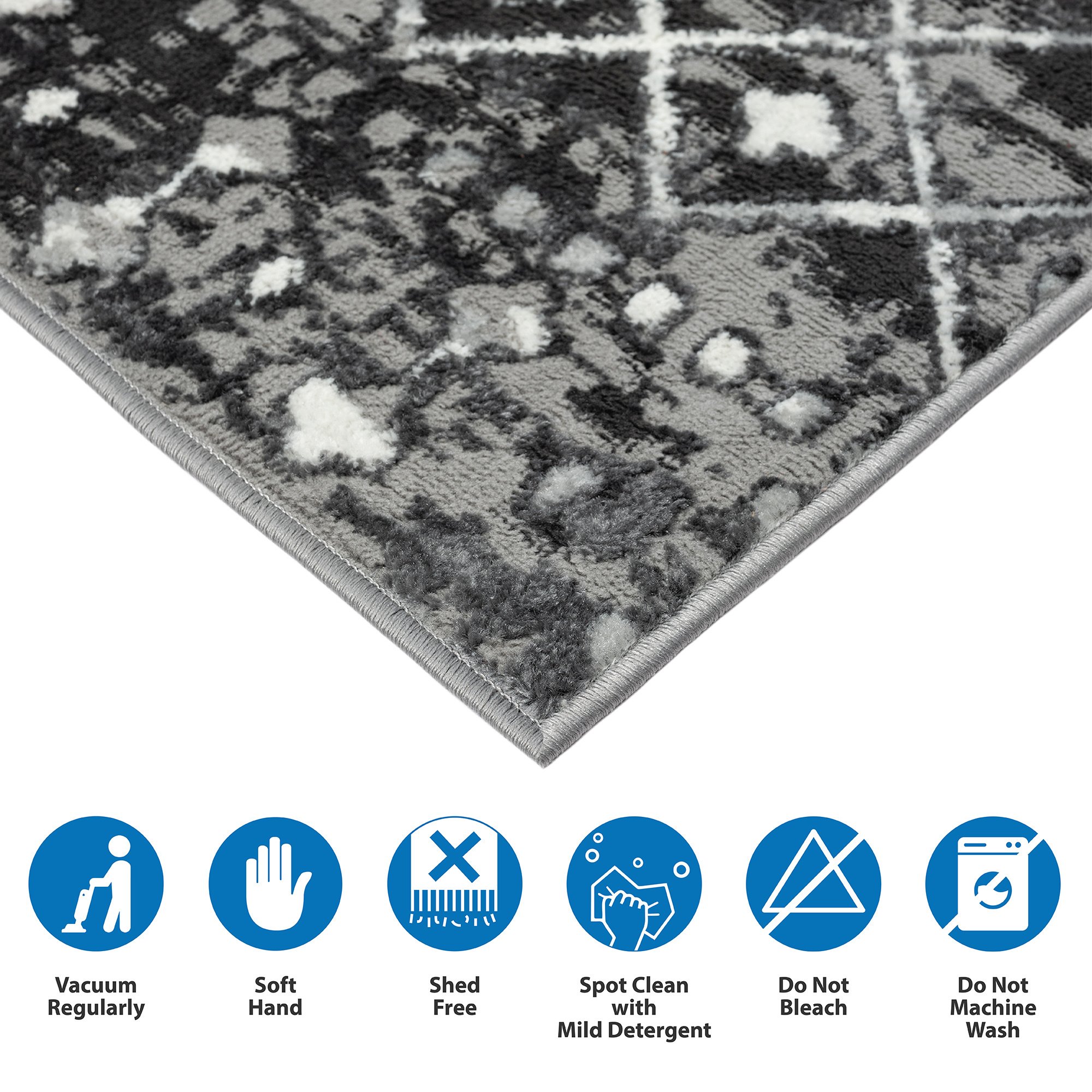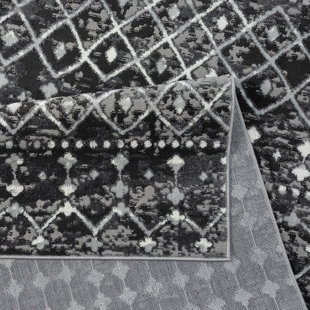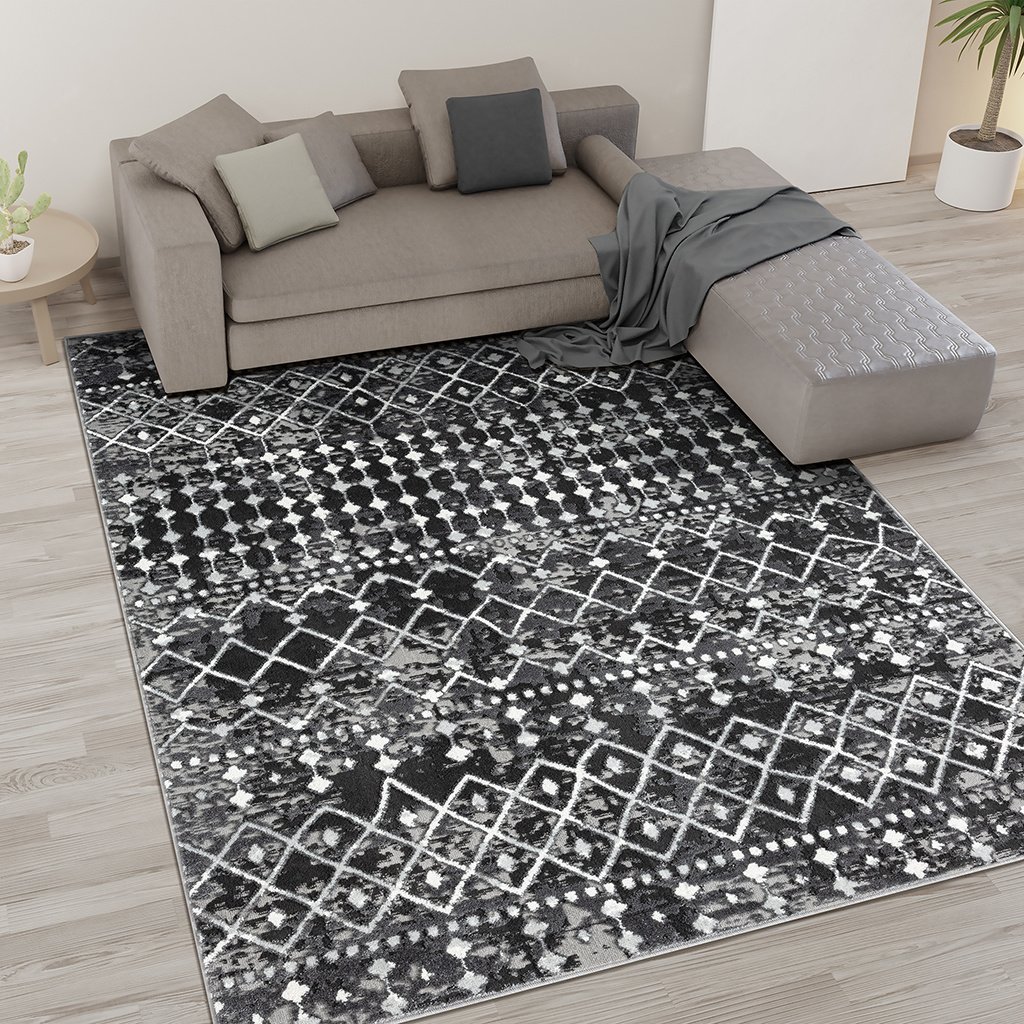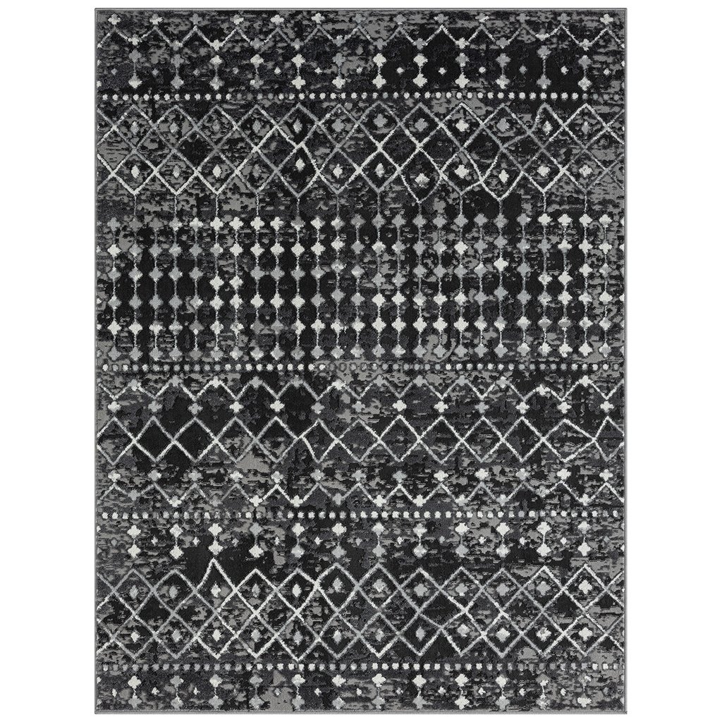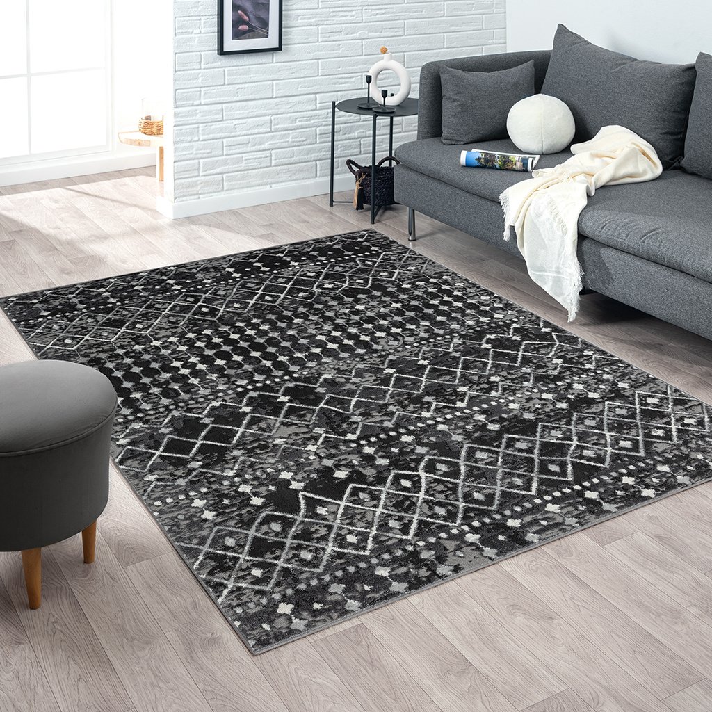 Add a fashionable style to your living space with the Madison Park Hannah Moroccan Area Rug. This machine woven, cut area rug features a charcoal and grey globally inspired print creating a rich and beautiful, look and feel. The medium soft pile provides simple comfort, as a transparent sprayed latex reverse helps to prevent rug from sliding making it well suited to high-traffic areas in your home. Easy to clean with a vacuum or spot cleaning, while also stain and fade resistant - this area rug brings a splash of color and a textural element to any home decor. This woven area rug is OEKO-TEX certified, meaning it does not contain any harmful substances or chemicals to ensure quality comfort and wellness. Available in multiple colors and sizes, this rug is perfect for any living room, family room, and or other room decor. A rug pad is highly recommended to keep the rug more secured in place; Rug pad sold separately.