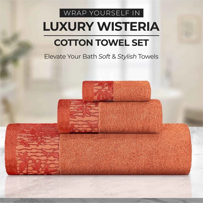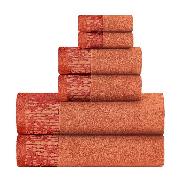 Home > Wisteria Cotton Medium Weight Floral Jacquard Border 6 Piece Towel Set