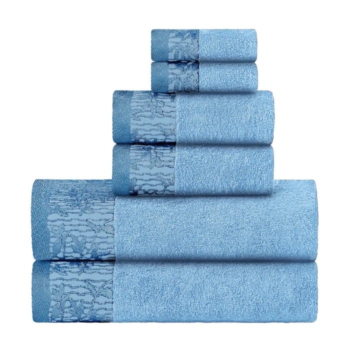 Wisteria Cotton Medium Weight Floral Jacquard Border 6 Piece Towel Set