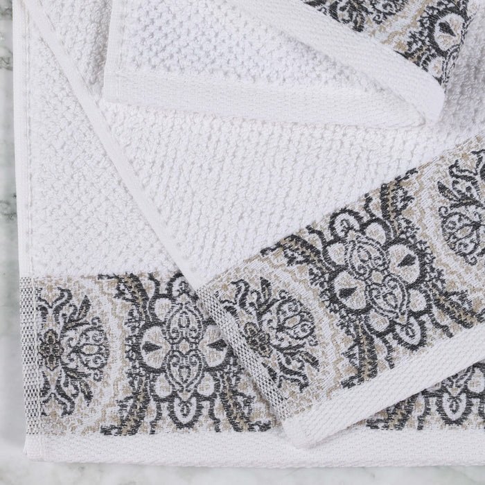 Medallion Cotton Jacquard Textured Face Towels/ Washcloths, Set of 12