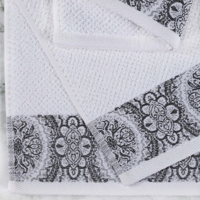Medallion Cotton Jacquard Textured Face Towels/ Washcloths, Set of 12