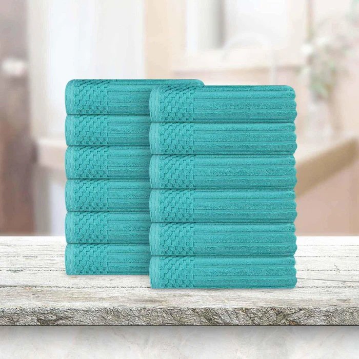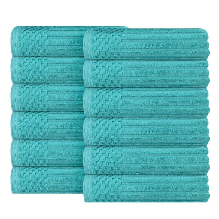 Soho Ribbed Cotton Absorbent Face Towel / Washcloth Set of 12