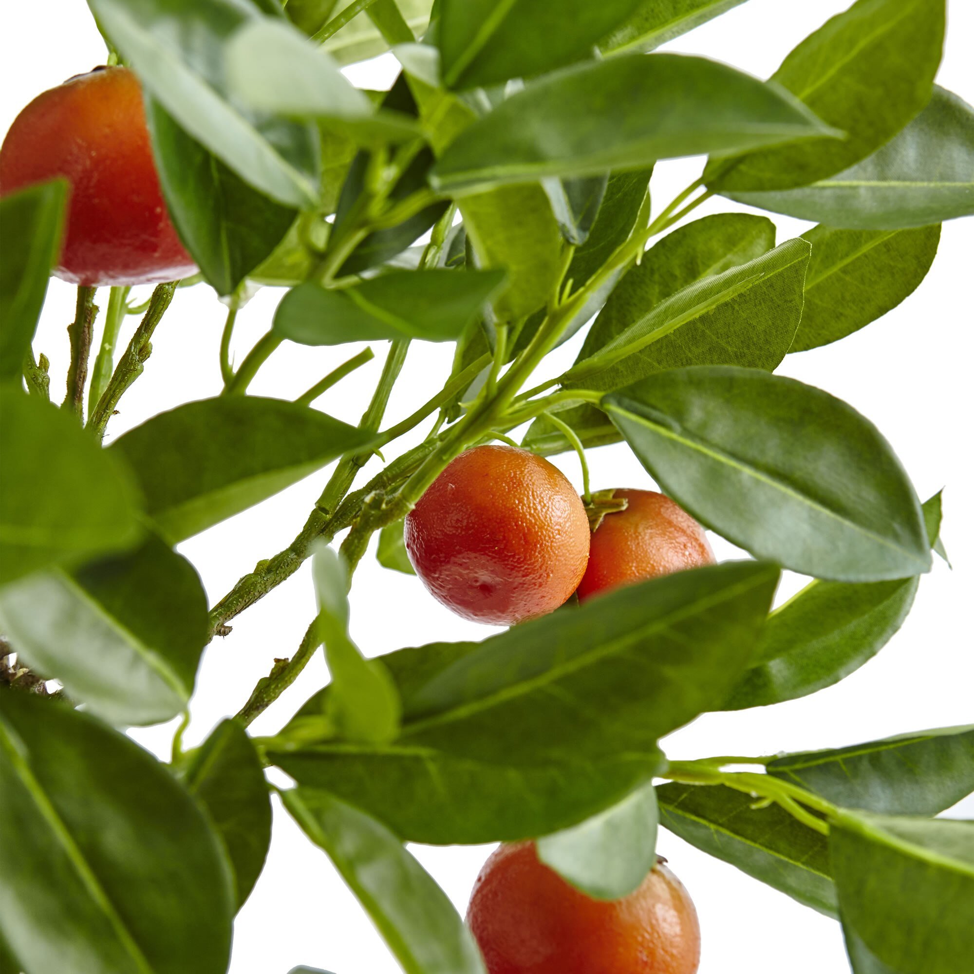 Faux orange tree in a rustic style planter makes the perfect corner accessory for a shabby chic or farmhouse living room. Bring a pop of greenery into the home with delicate orange buds and textured leaves. For indoor use only.