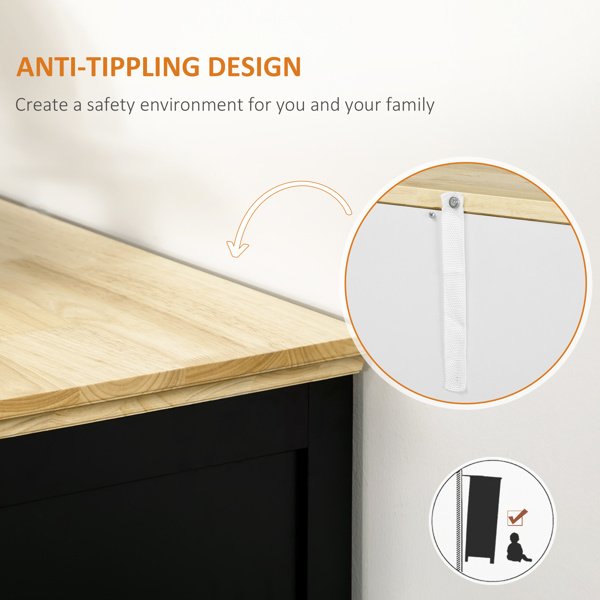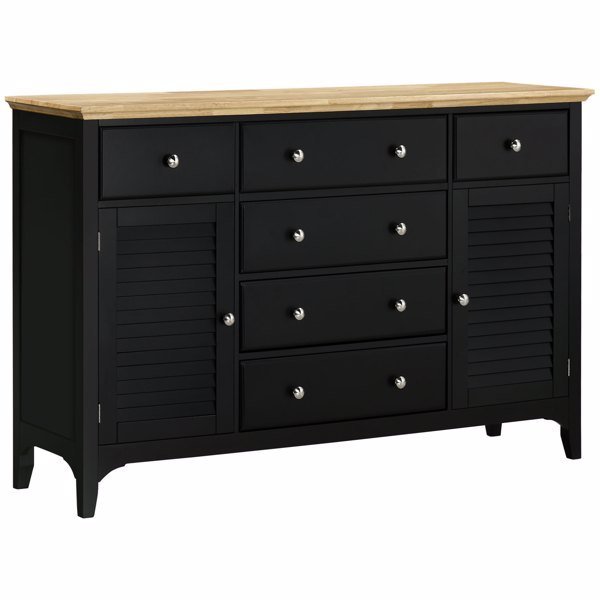 • - Large storage space with two cabinets and six drawers for holding daily accessories and utensils